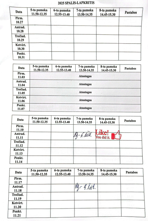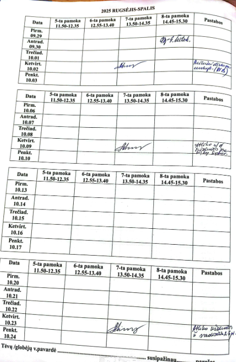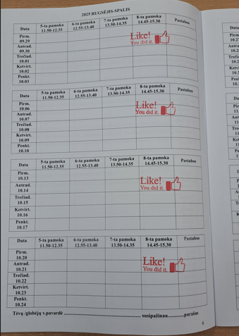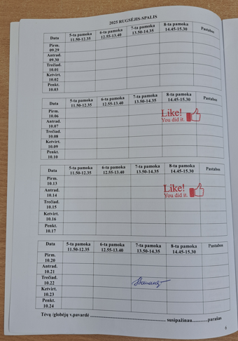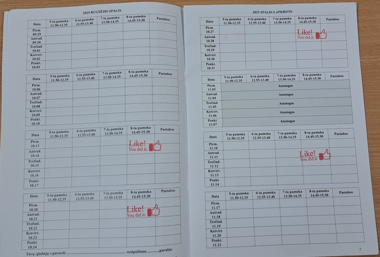 Žurnalas (sąsiuvinis) leidžia aiškiai fiksuoti mokinių dalyvavimą, skatina jų atsakomybę ir sąmoningą požiūrį į mokymąsi.