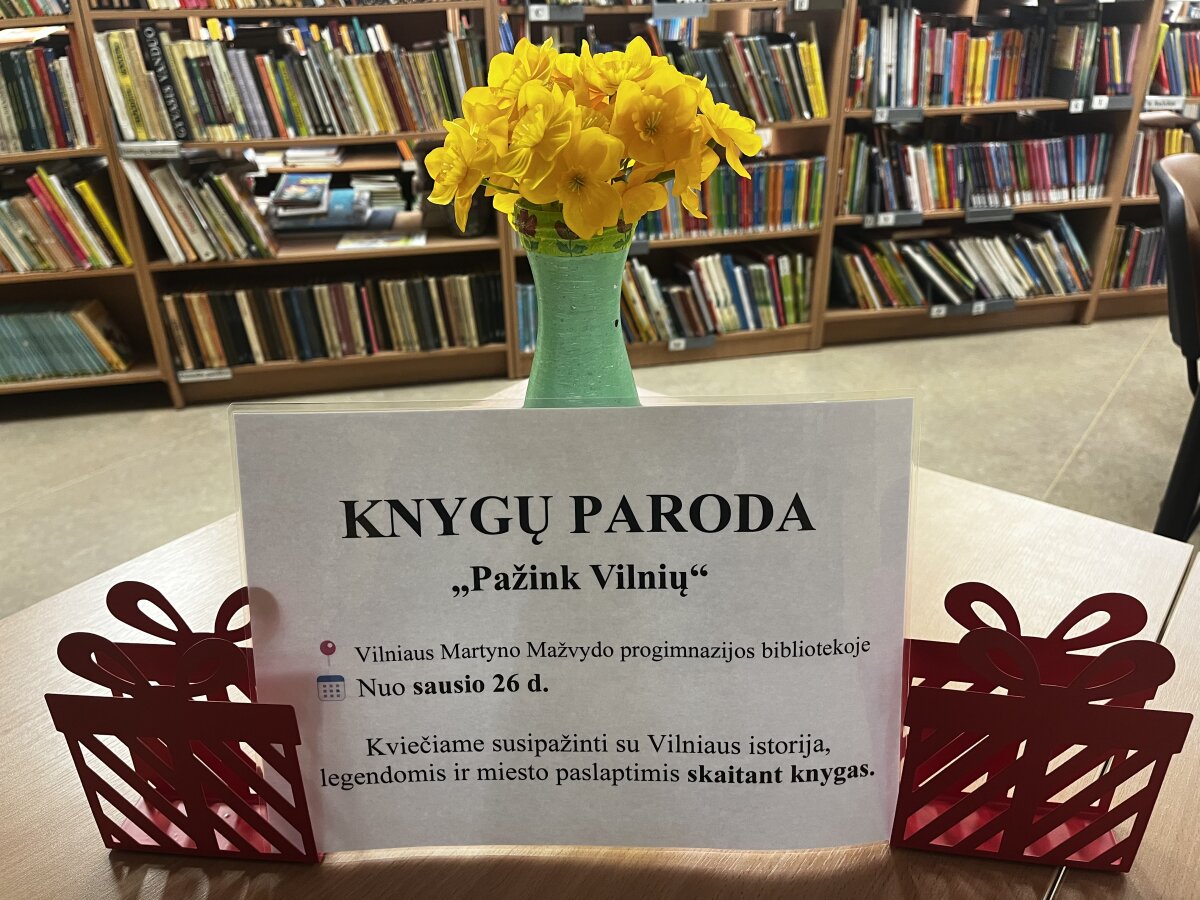 Nuo 2025 m. sausio 26 d. Vilniaus Martyno Mažvydo progimnazijos bibliotekoje, Vilniaus gimtadienio proga, kviečiame apsilankyti knygų parodoje „Pažink Vilnių“.