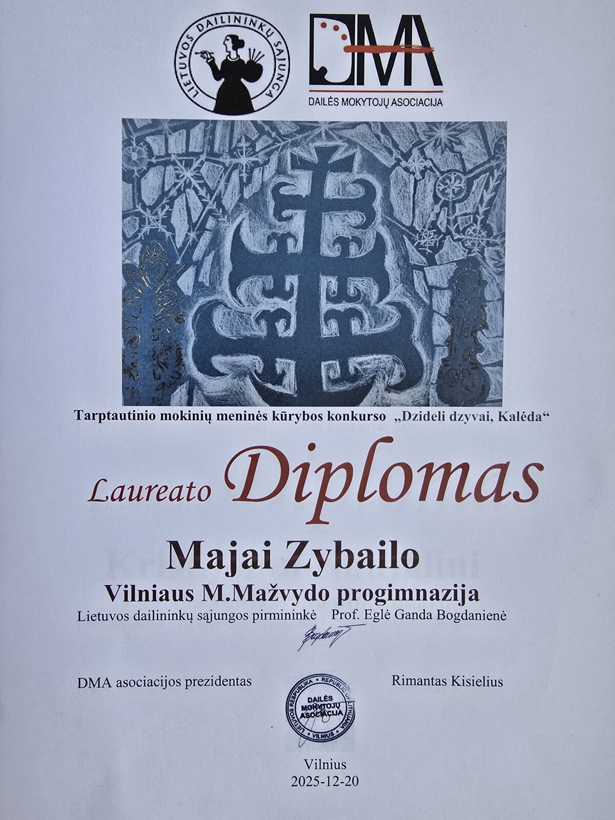 Nuoširdžiai džiaugiamės ir didžiuojamės, kad Vilniaus Martyno Mažvydo progimnazijos mokiniai sėkmingai dalyvavo tarptautiniame nuotoliniame mokinių meninės kūrybos konkurse „Dzideli dzyvai, Kalėda“ ir tapo jo laureatais.