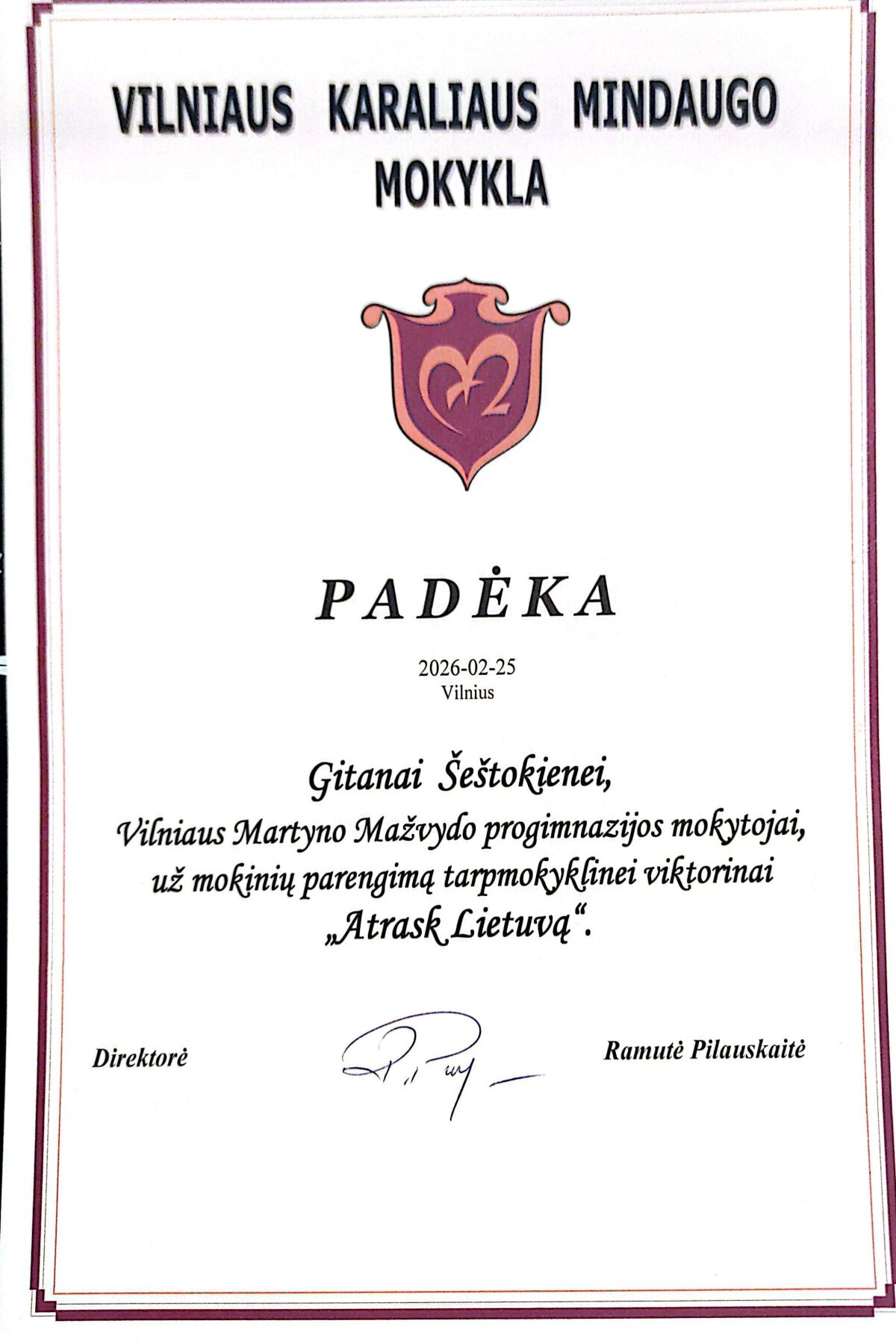 Nuoširdų ačiū tariame renginio organizatorei – Karaliaus Mindaugo mokyklai.