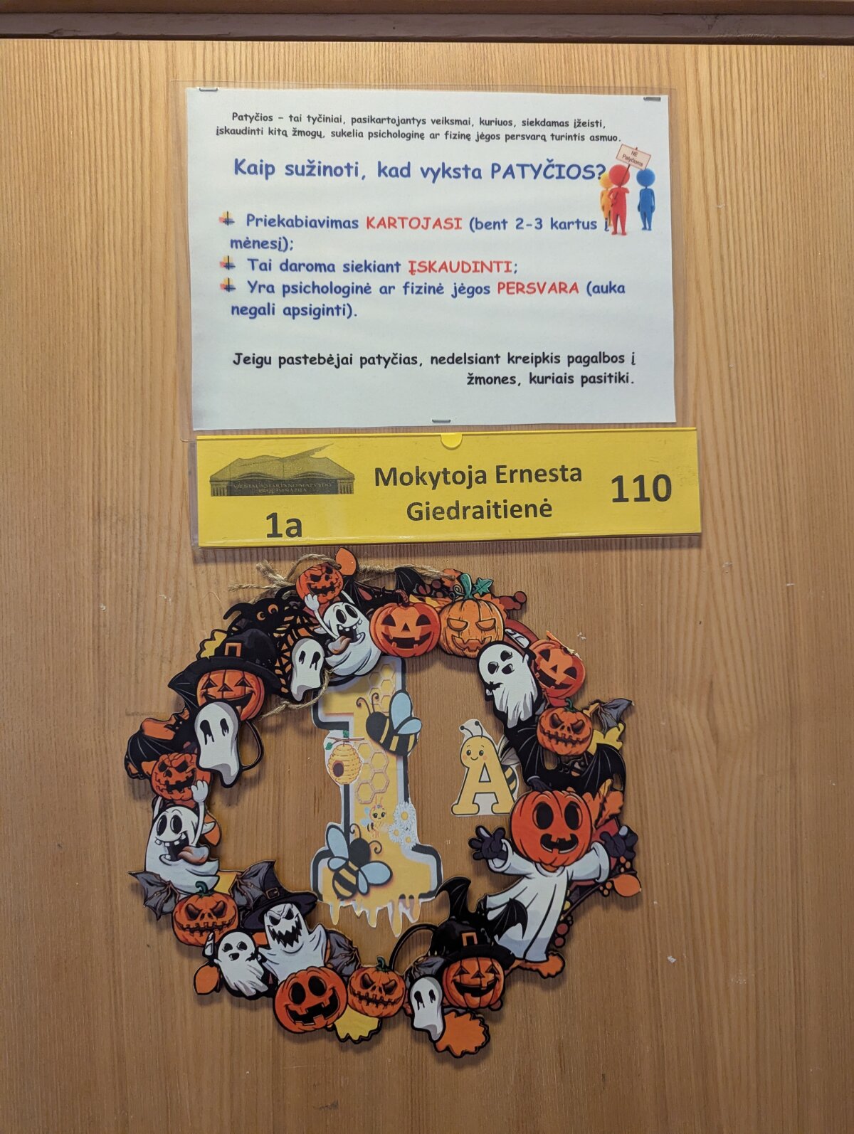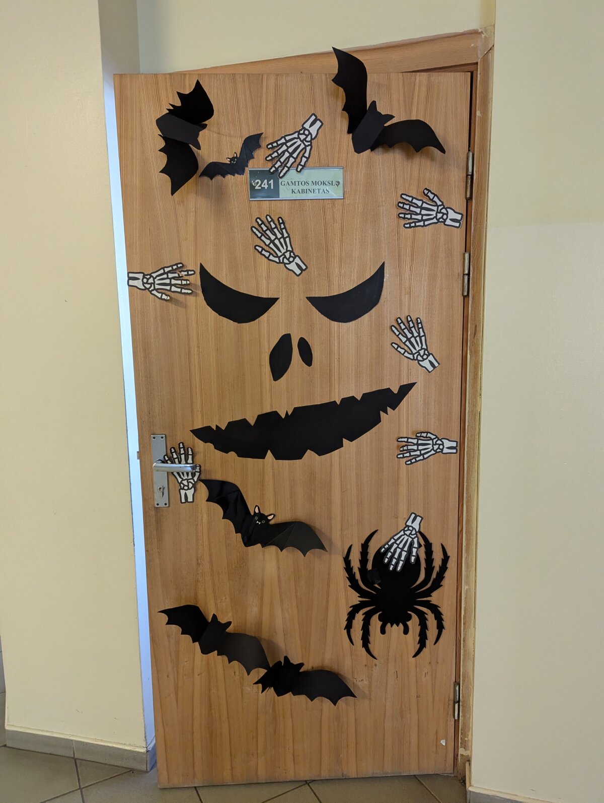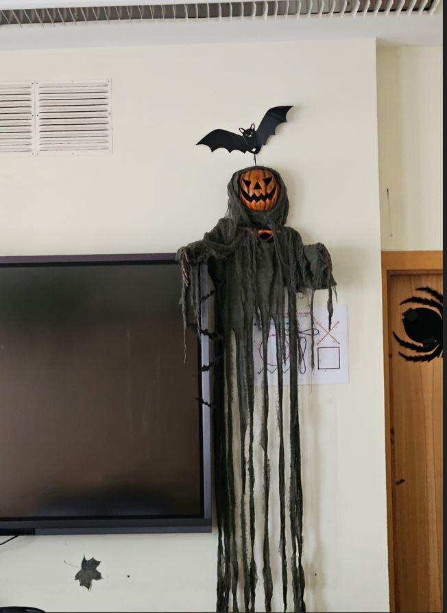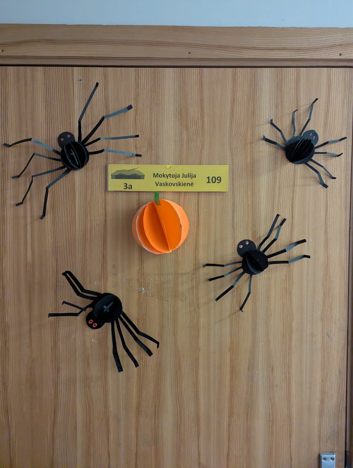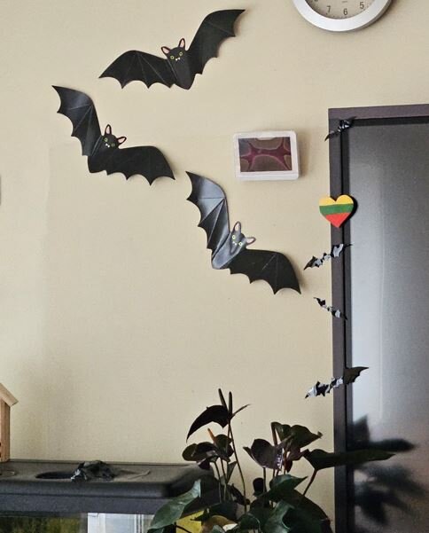 Ant kabinetų durų „apsigyveno“ vorai, šikšnosparniai, vaiduokliai ir moliūgai. Kiekviena klasė stengėsi išsiskirti savo idėjomis: vieni rinkosi tamsiai paslaptingas spalvas, kiti kūrė linksmas ir net juokingas dekoracijas. Progimnazijos koridoriuose tvyrojo kūrybinis šurmulys, juokas ir gera nuotaika – juk kartu puošiant viskas atrodo daug smagiau!