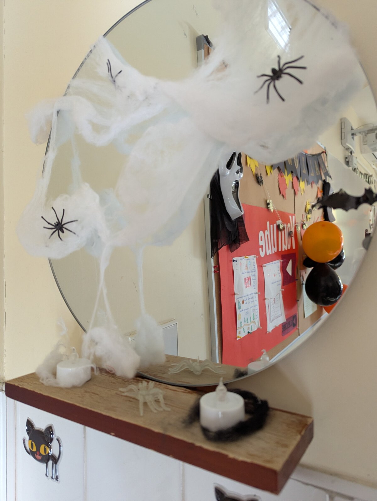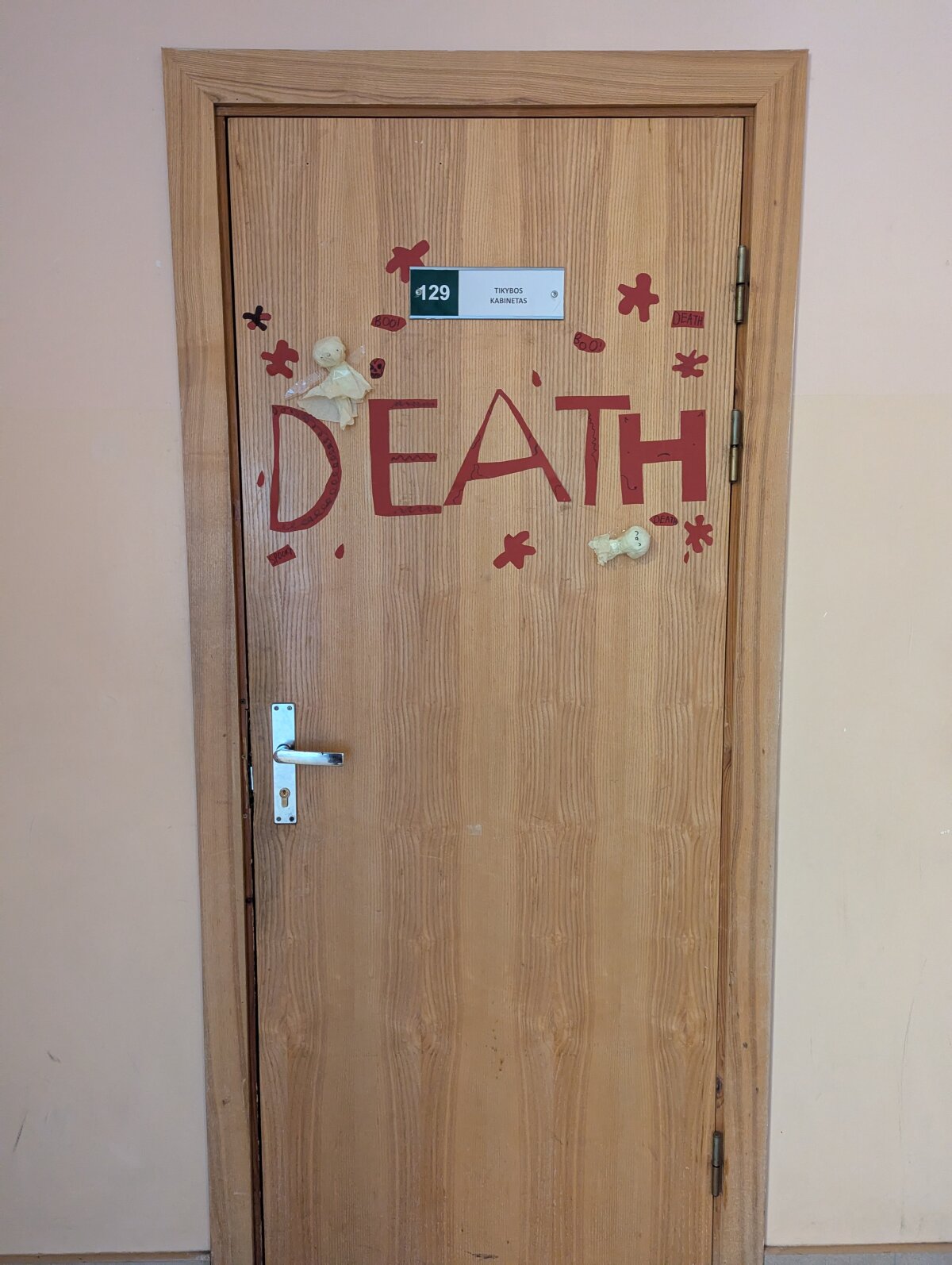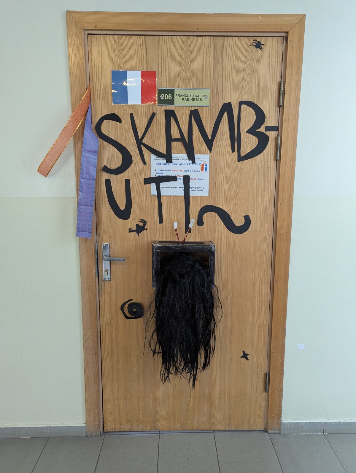 Ant kabinetų durų „apsigyveno“ vorai, šikšnosparniai, vaiduokliai ir moliūgai. Kiekviena klasė stengėsi išsiskirti savo idėjomis: vieni rinkosi tamsiai paslaptingas spalvas, kiti kūrė linksmas ir net juokingas dekoracijas. Progimnazijos koridoriuose tvyrojo kūrybinis šurmulys, juokas ir gera nuotaika – juk kartu puošiant viskas atrodo daug smagiau!