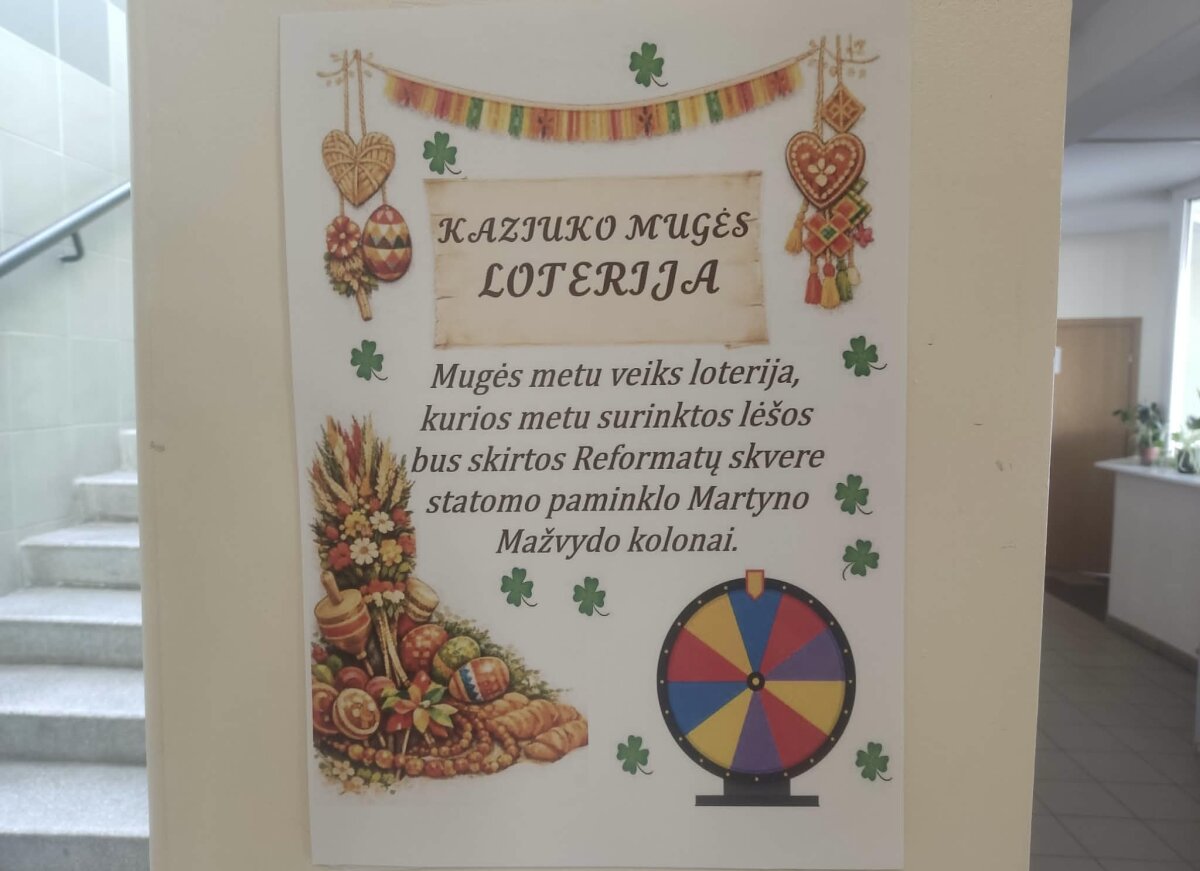 Mugės metu veiks loterija, kurios metu surinktos lėšos bus skirtos Reformatų skvere statomo paminklo Martyno Mažvydo kolonai. Kviečiame mokinius iki Kaziuko mugės pradžios į muziejų atnešti prizus - už tai bus skiriamos socialinės valandos.