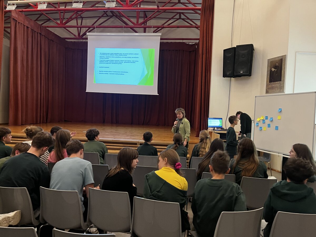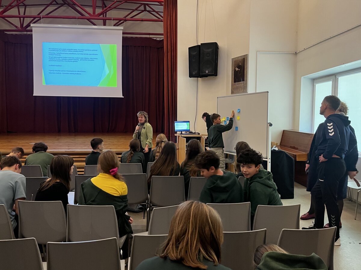 Direktorės pavaduotojos ugdymui Vilmos Junevičienės mokiniai buvo pakviesti į idėjų generavimo dirbtuves „Pasiūlyk savo idėją“. Mokiniai savo pasiūlymus rašė ant lapelių, kurie vėliau buvo suklijuoti ant lentos. Direktorė Eglė Laumelienė sugrupavo idėjas, jas pristatė ir aptarė kartu su mokiniais.