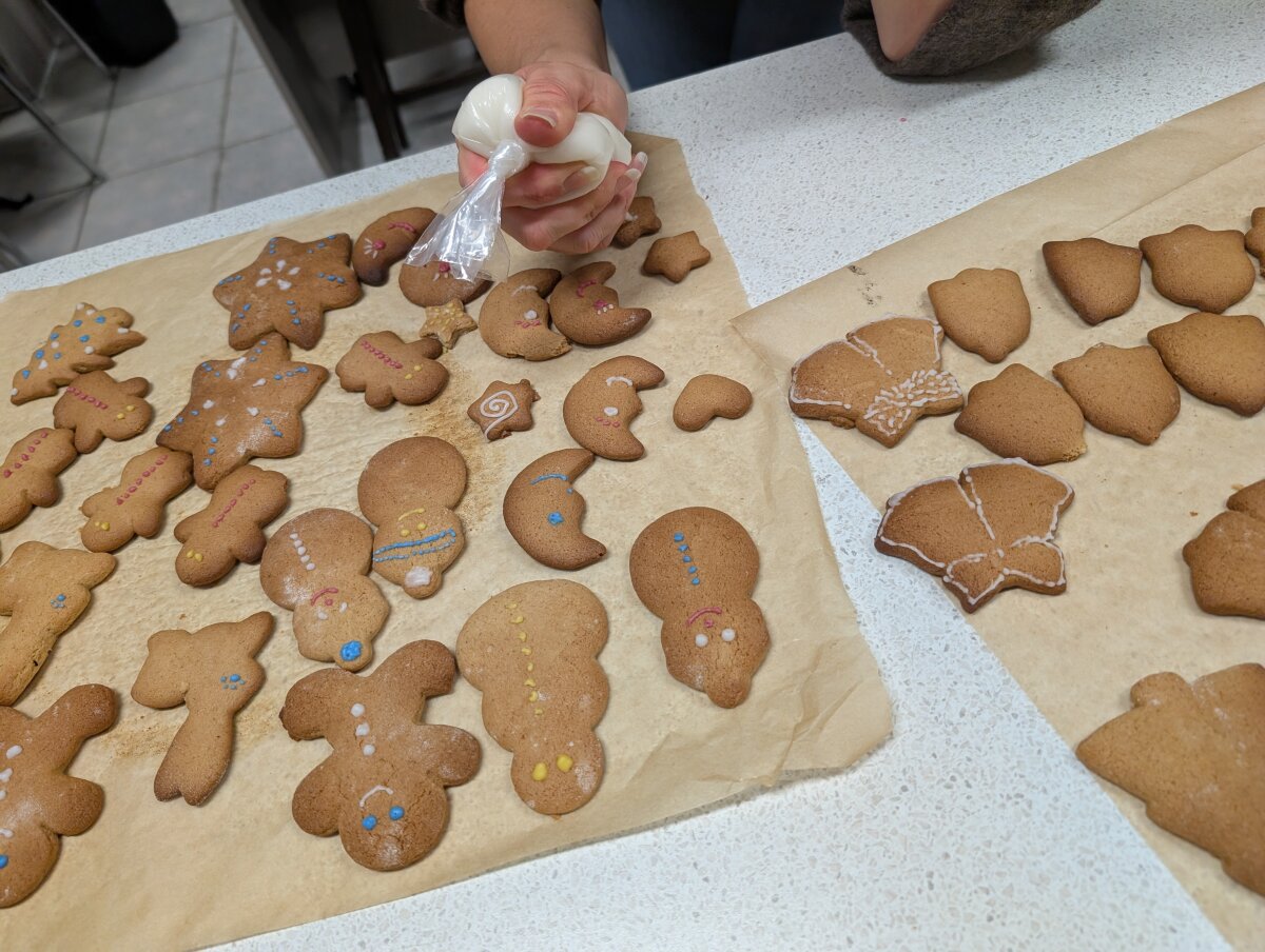 Gruodžio mėnesį Vilniaus Martyno Mažvydo progimnazijos „Šaukšto šmaukšto“ būrelio nariai ir mokytojai vėl leidosi į saldų kūrybos nuotykį – kepė meduolinius namukus. Kaip ir kasmet, su džiaugsmu kūrėme mažas stebuklingas Kalėdų istorijas iš meduolinės tešlos. Nuotraukose galite pamatyti mūsų kepimo akimirkas ir šypsenas, kurios lydėjo kiekvieną namuką.