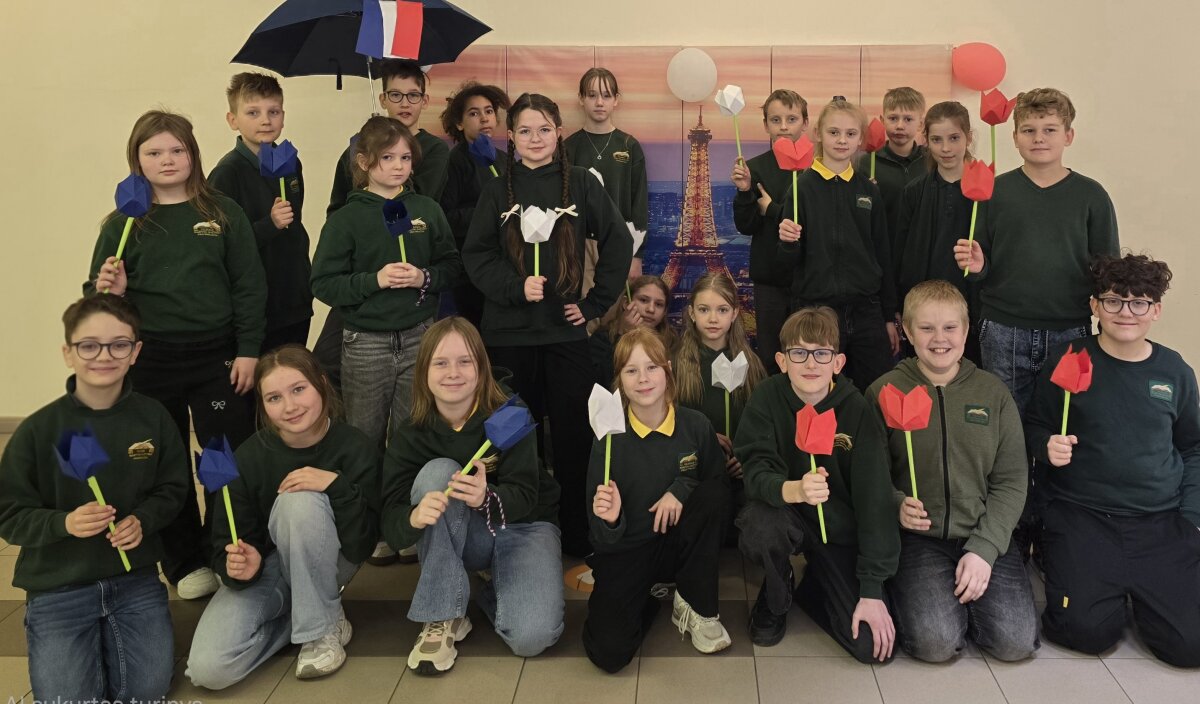 Tulpės, fotosesija prie Eifelio bokšto, spalvingi penktokų drabužiai – nei prancūziškos dvasios, nei geros nuotaikos progimnazijoje šiandien netrūko!
