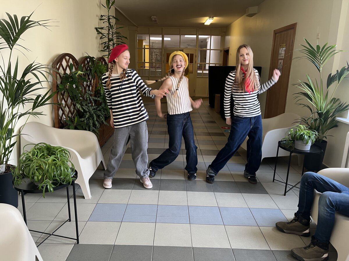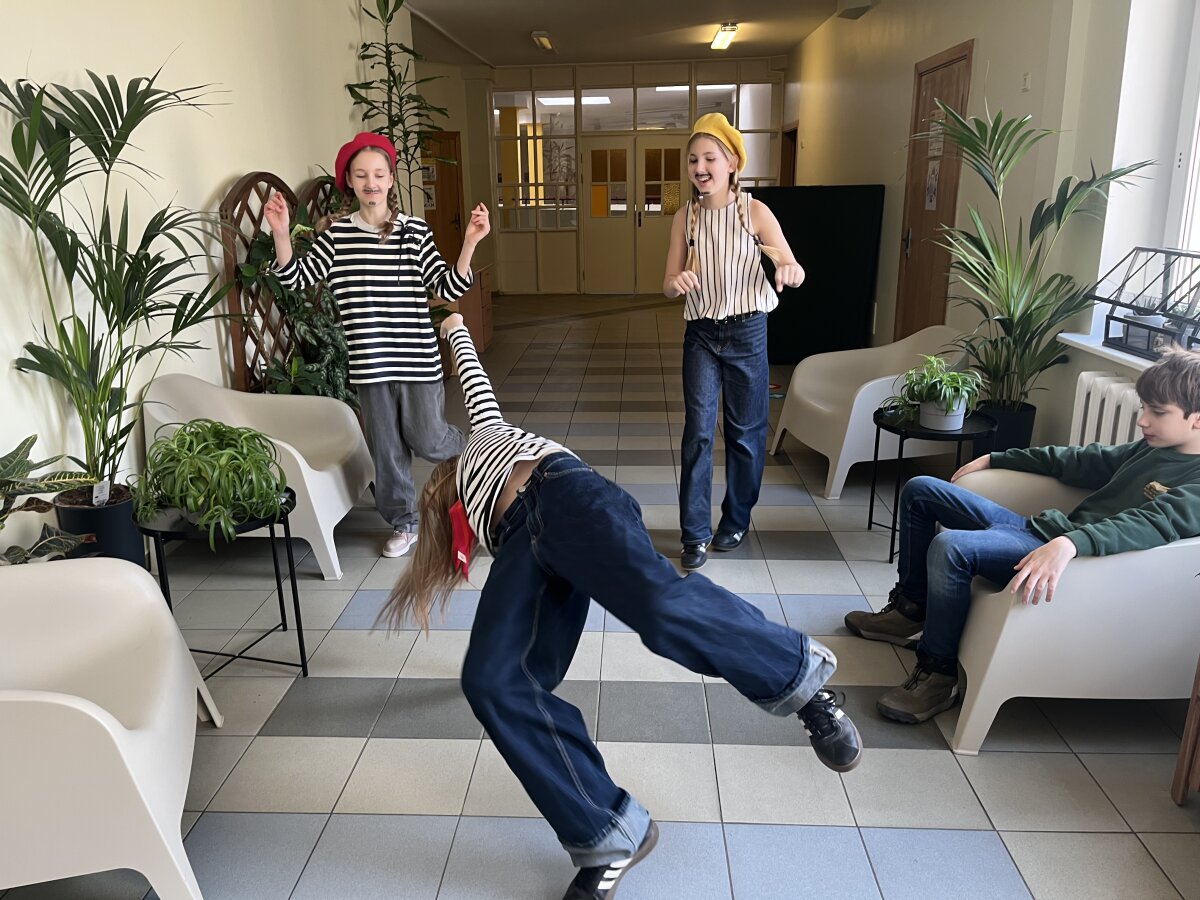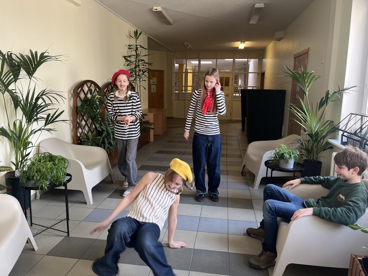 4a, 4b, 4c, 4d, 4e, 4f ir 4g klasių mokinius kavinukėje pasitiko 5p klasės moksleivės, šokančios pagal dainos ritmą. Skambėjo prancūziška muzika, kūrusi jaukią ir šventišką atmosferą.