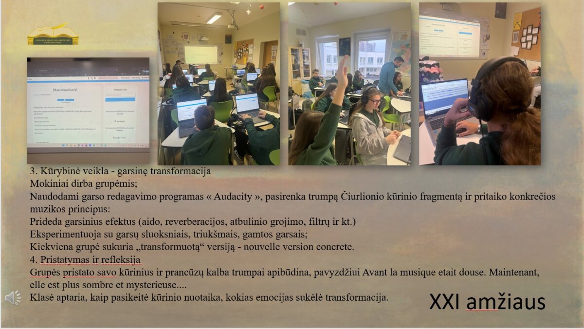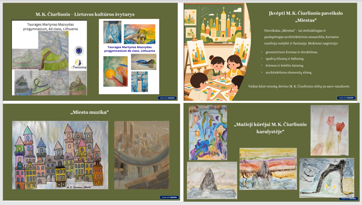 Tauragės Martyno Mažvydo progimnazija – „M. K. Čiurlionio takais: spalvų ir garsų kelionė per „eTwinning“ projektą“;