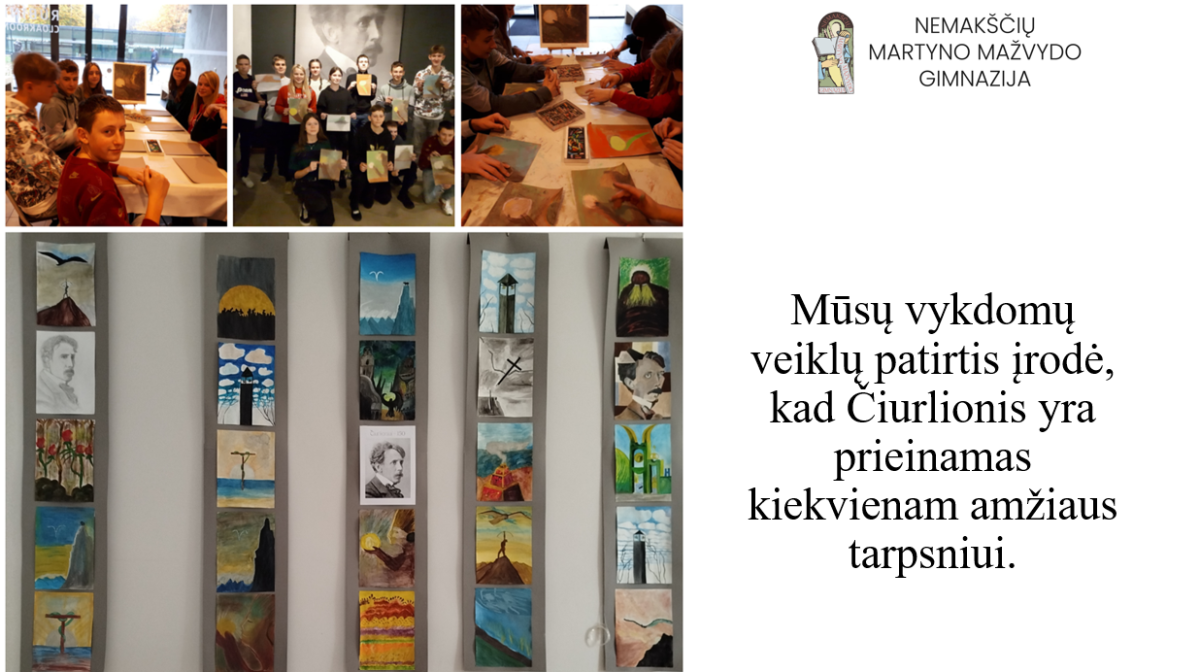 2025-ieji metai parodė, kaip įkvėpimas iš didžiojo menininko kūrybos gali sklisti per pedagogų iniciatyvas, mokinių darbus ir bendruomenės kūrybinius sumanymus – jungiant praeitį su dabartimi, meną su ugdymu ir stiprinant progimnazijos kūrybinę dvasią.