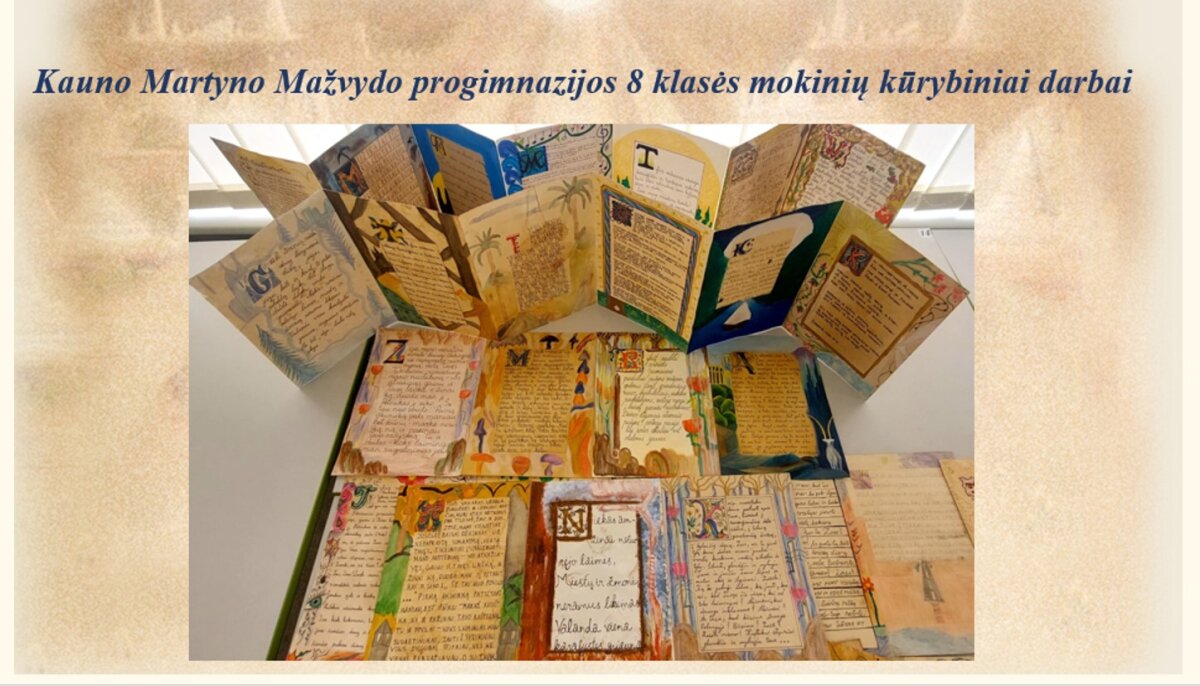 Kauno Martyno Mažvydo progimnazija – „Rankraštiniuose puslapiuose M. K. Čiurlionio piešiniai ir laiškai Sofijai“;