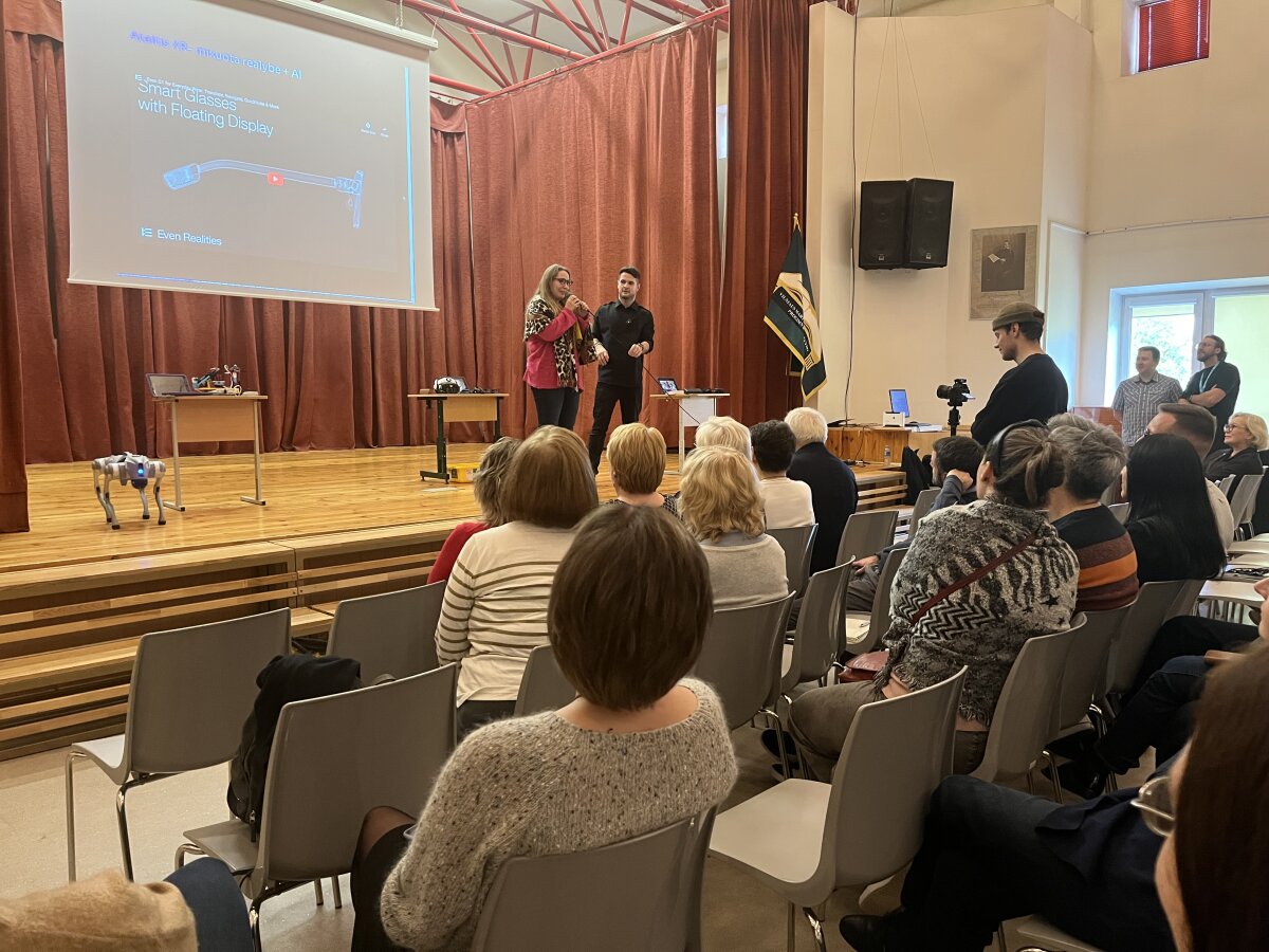 Pranešimo metu Robotikos akademijos bendraįkūrėjas Kristijonas Vasiliauskas supažindino dalyvius su pažangiausiomis šiuolaikinio ugdymo technologijomis – dirbtiniu intelektu, robotika, virtualia ir papildyta realybe bei neurotechnologijomis. Viena svarbiausių išsakytų minčių – kad „pati svarbiausia technologija, kurią turi valdyti kiekvienas vaikas, yra jo smegenys“.