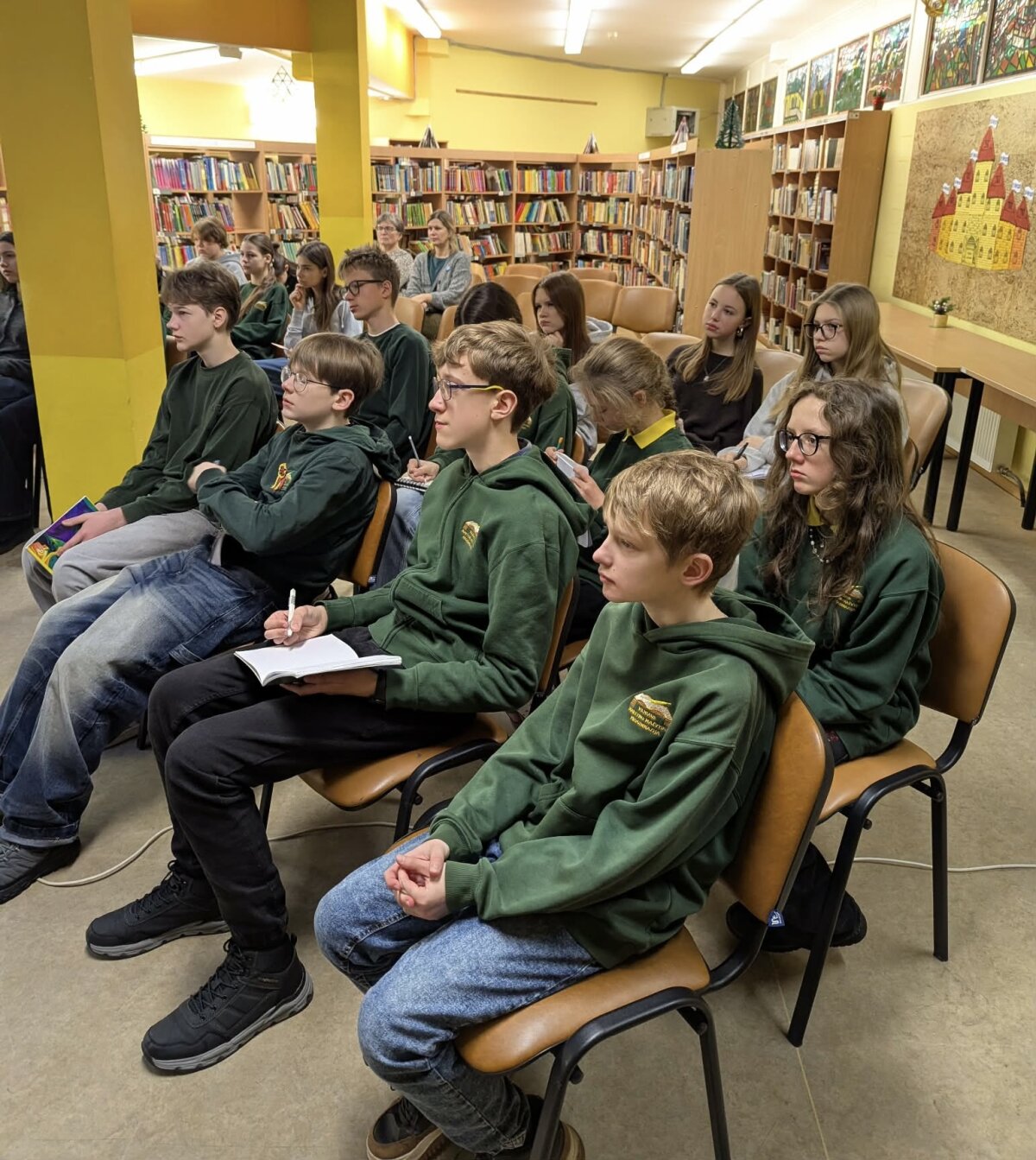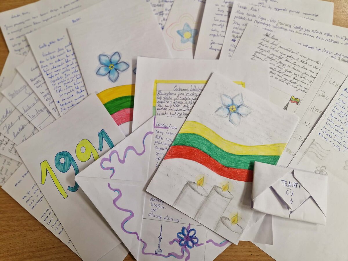Literatūros pamokoje mokiniai atliko kūrybines užduotis, skirtas Laisvės gynėjų dienai paminėti. Vieni vaikai rašė laiškus bibliotekininkei, kiti savo įspūdžius ir emocijas perteikė piešdami.