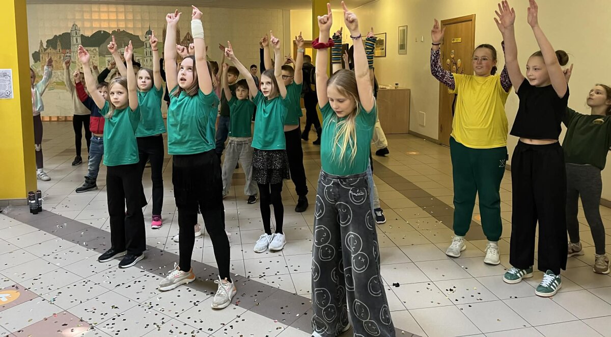 Pradinių klasių korpuse mokiniai džiugino bendru flešmobu, o vyresnieji muzikos kabinete pasinėrė į kūno perkusijos ritmus. 1d ir 3f klasių mokiniai šią dieną įprasmino nusileidinėdami nuo kalniukų, o klasės džiaugsmingas akimirkas įamžino bendrose nuotraukose.