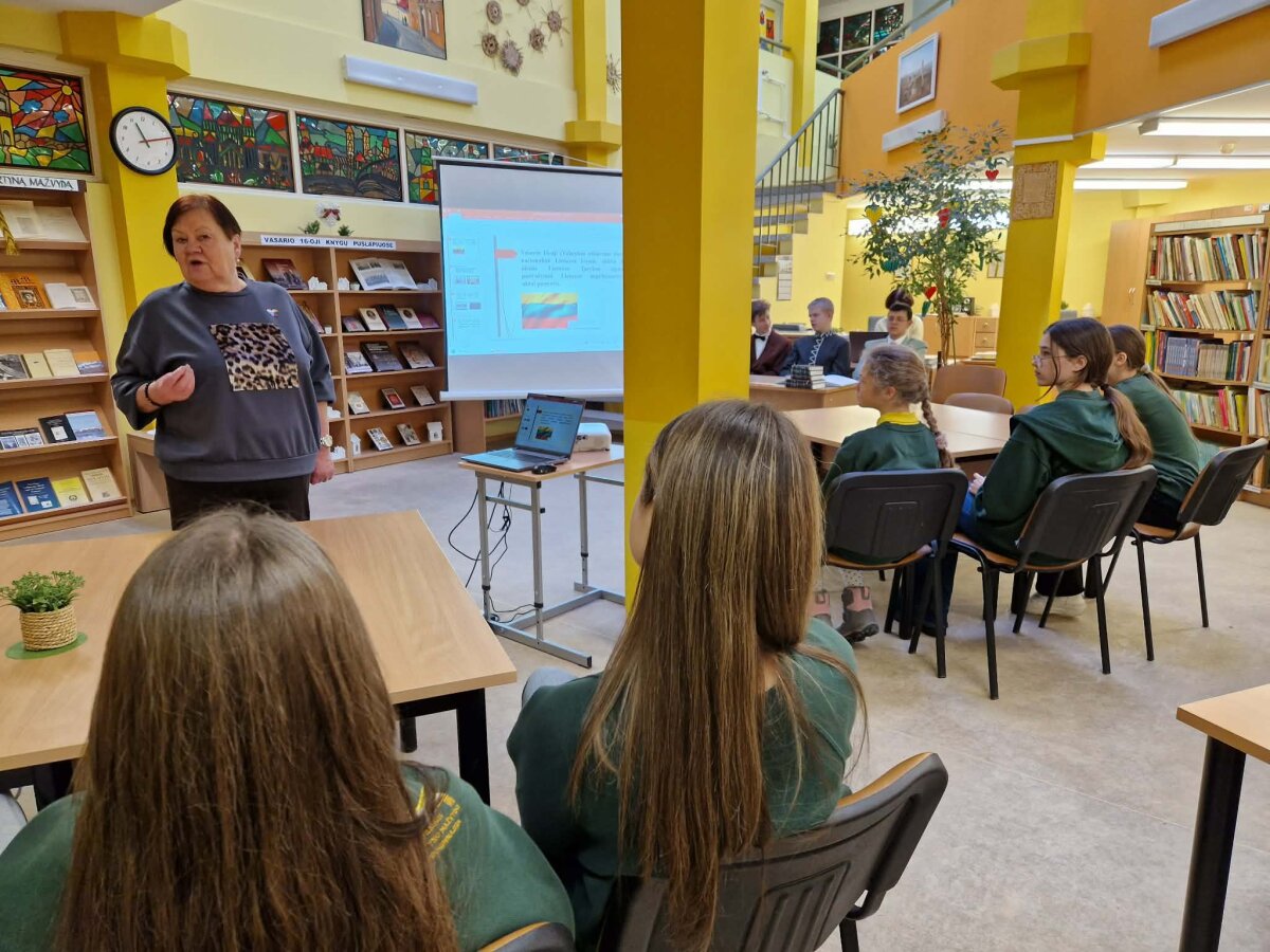 Progimnazijos bibliotekoje vyko išskirtinės integruotos pilietiškumo, istorijos ir literatūros pamokos, kuriose dalyvavo 7d ir 8p klasių mokiniai. Istorijos mokytoja Daiva Augulienė įtaigiai pristatė Nepriklausomybės Akto pasirašymo aplinkybes, nukeldama septintokus ir aštuntokus į 1918-ųjų Vilnių. Mokiniai ne tik klausė įdomaus pasakojimo, bet ir dalyvavo diskusijoje, ką jiems šiandien reiškia laisvė, kūrė pastraipą tema „Būti laisvam: mada ar būtinybė?“. Šie darbai atskleidė brandų jaunųjų mažvydiečių požiūrį į pamatines vertybes.