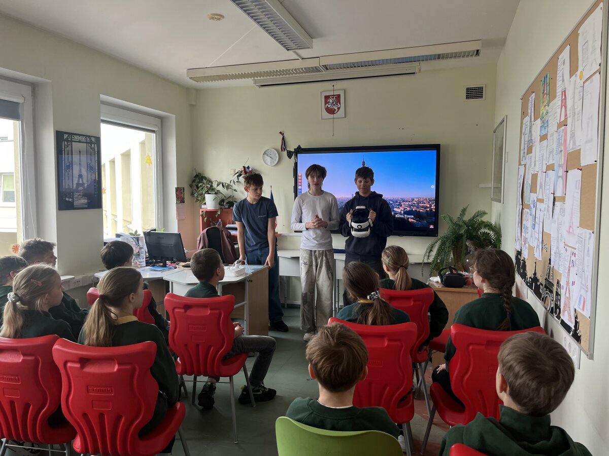 Ketvirtokai taip pat bendravo su prancūzų kalbos mokytojais Virginija ir Pjeru, atsakinėjo į klausimus ir aktyviai įsitraukė į Frankofonijos savaitės veiklas, tapdami jos dalimi.