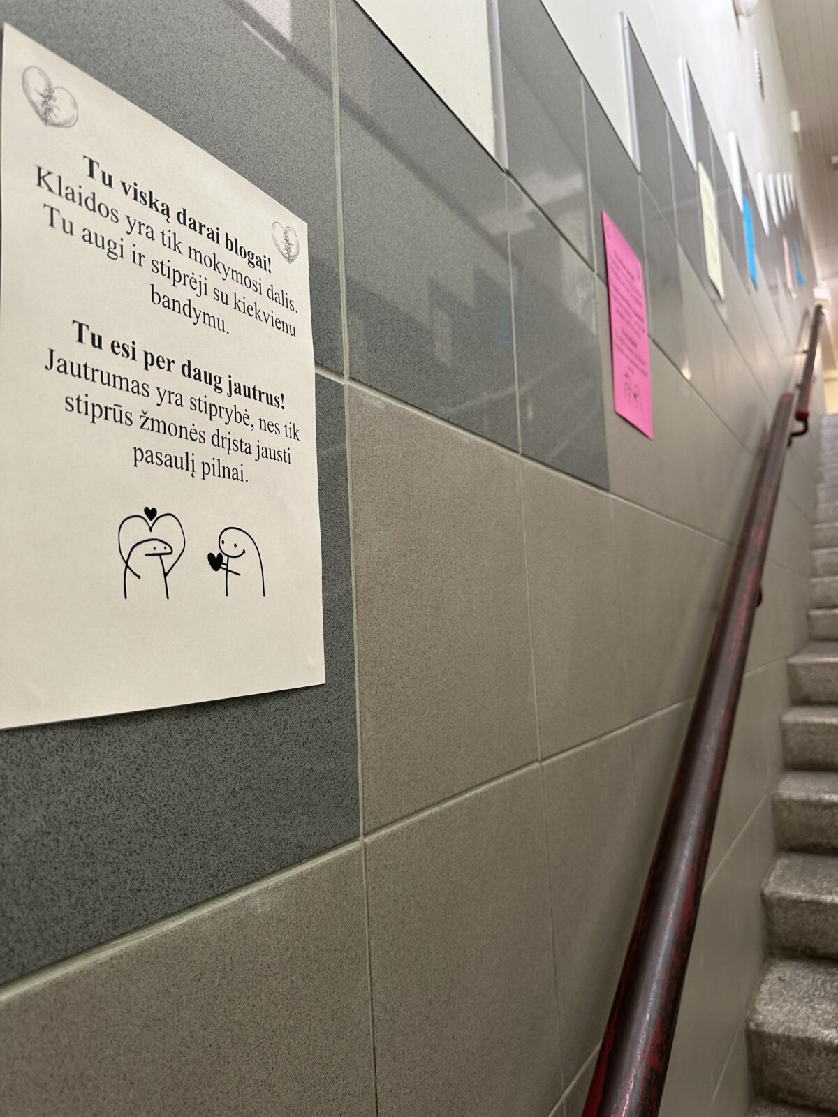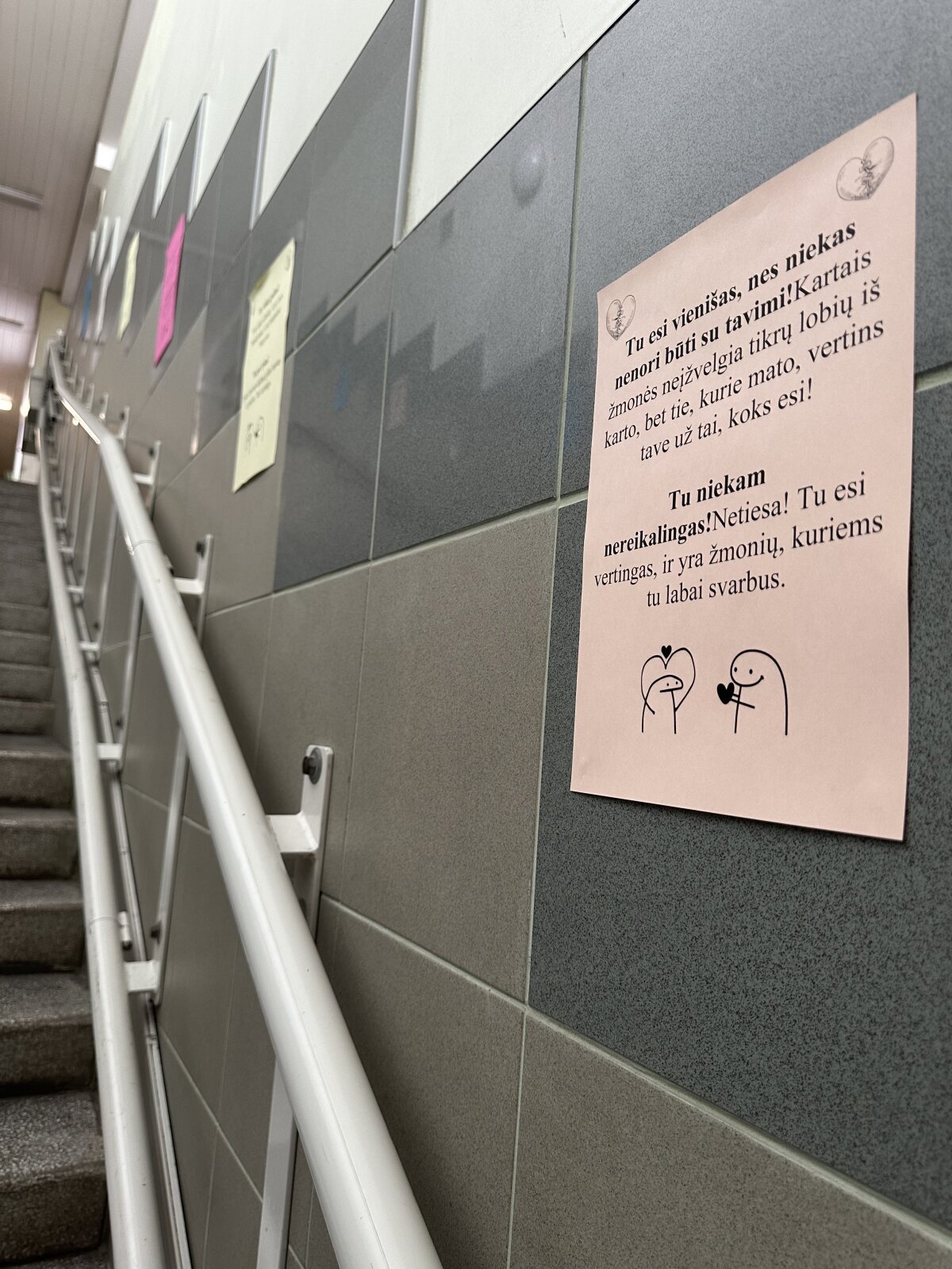 5–8 klasių mokiniai kūrė „patyčių pėdsakus“ mokyklos koridoriuose. Ši veikla kvietė iliustruoti žodžių poveikį emocinei savijautai ir padėjo mokiniams suprasti, kad žodžiai turi didžiulę galią – jie gali tiek sužeisti, tiek sustiprinti. Mokiniai mokėsi atpažinti pozityvios ir negatyvios kalbos skirtumus, analizavo jų pasekmes bei buvo skatinami rinktis pagarbią, palaikančią kalbą kasdienėje aplinkoje.