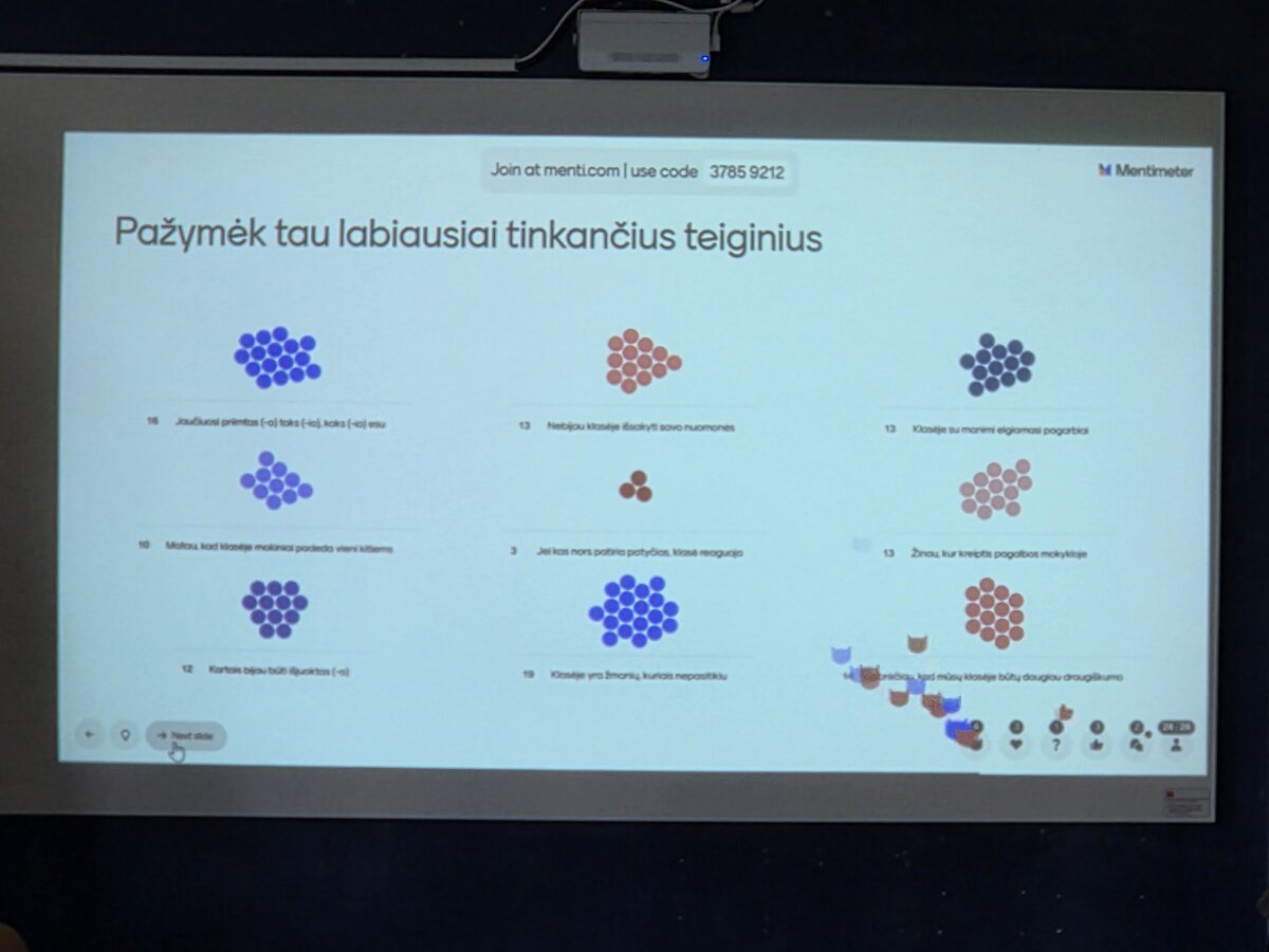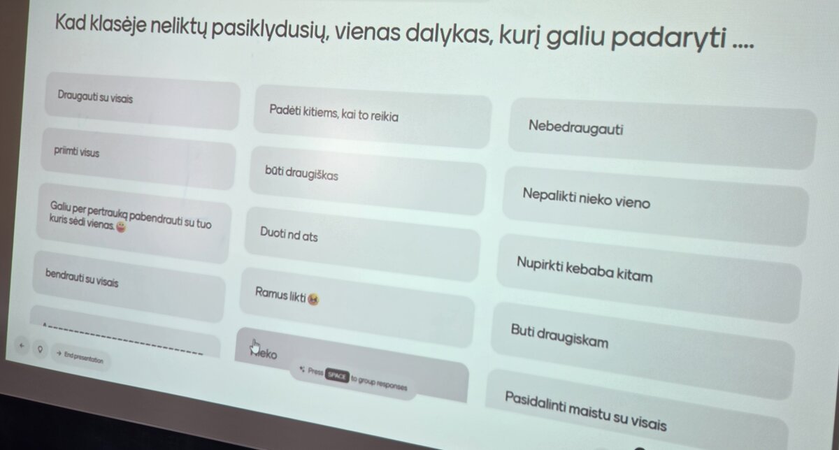 Refleksijos metu mokiniai išreiškė norą geriau pažinti vieni kitus, daugiau bendrauti, pasitikėti, būti draugiškesni ir empatiškesni. Tokios patyriminės veiklos leidžia ne tik kalbėti apie patyčių prevenciją, bet ir realiai stiprinti bendruomeniškumą bei tarpusavio supratimą.