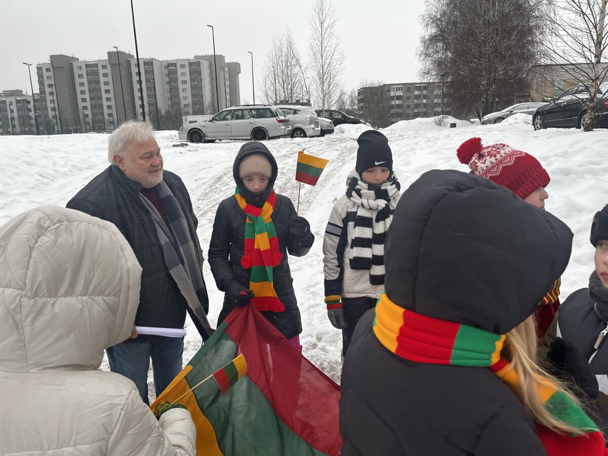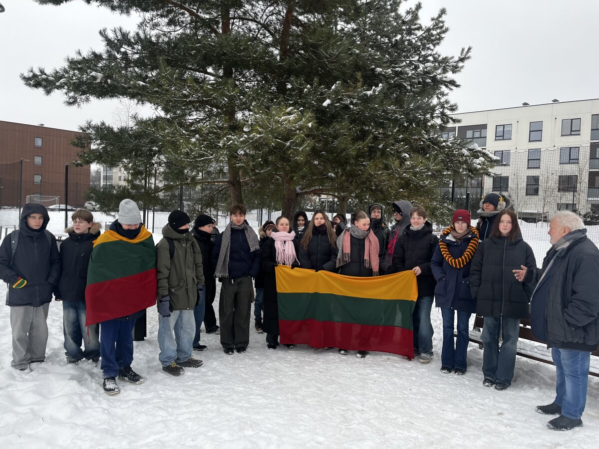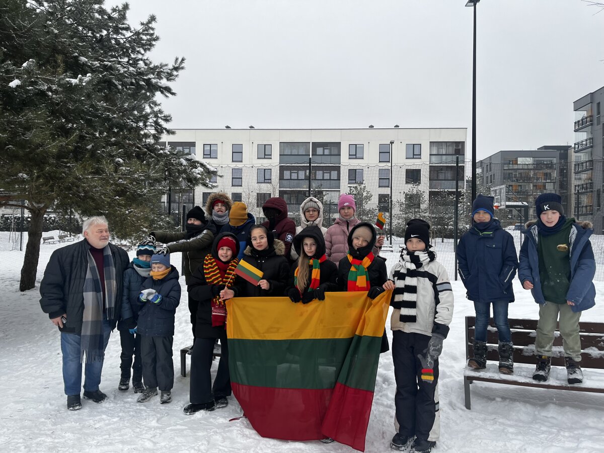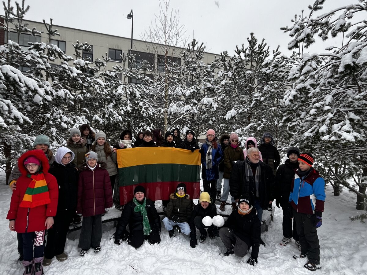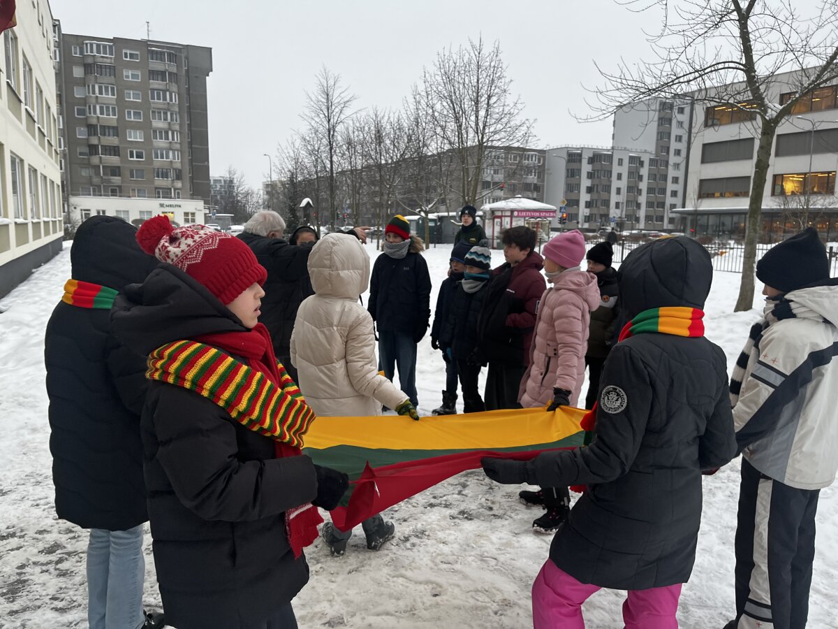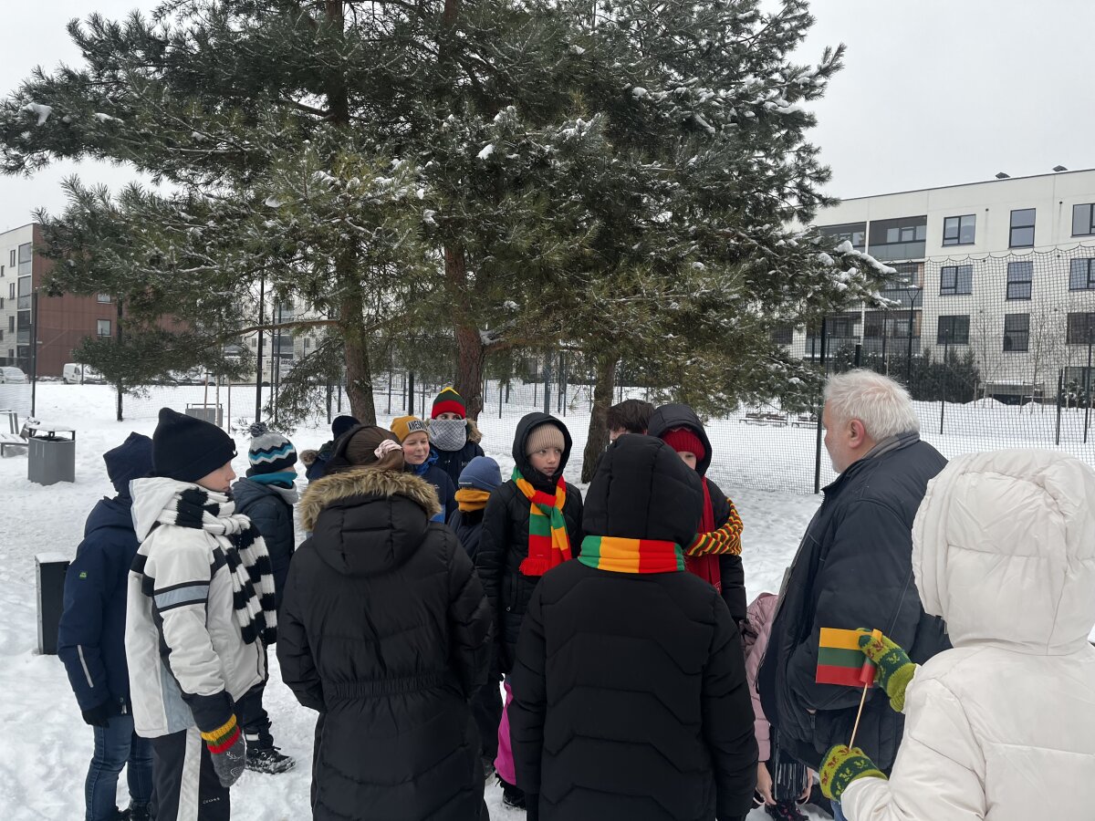 Progimnazijos 4 c, 5 d, 7 a, 7 b ir 7 d klasių mokiniai savaitę, skirtą Vasario 16-ajai, pradėjo pasipuošę trispalve simbolika. Mažosios Lietuvos skveras pasirinktas neatsitiktinai – jis primena istorinius ryšius su Lietuva, mūsų kultūros ir tautinės tapatybės išsaugojimo svarbą.