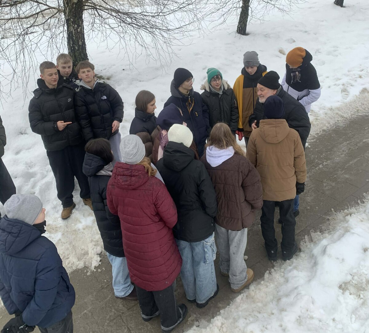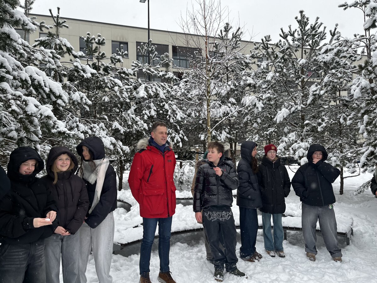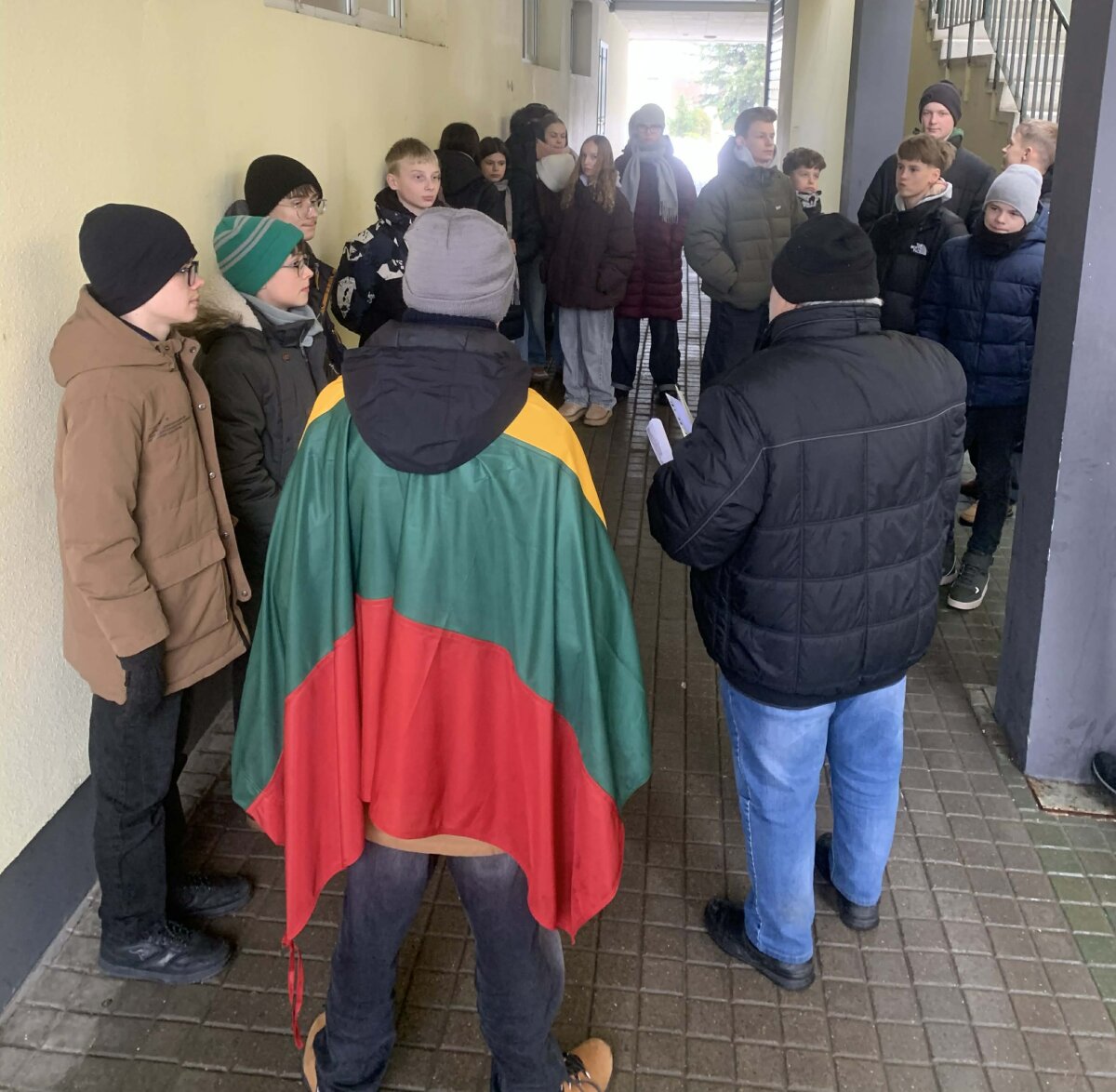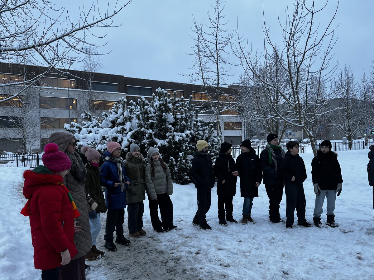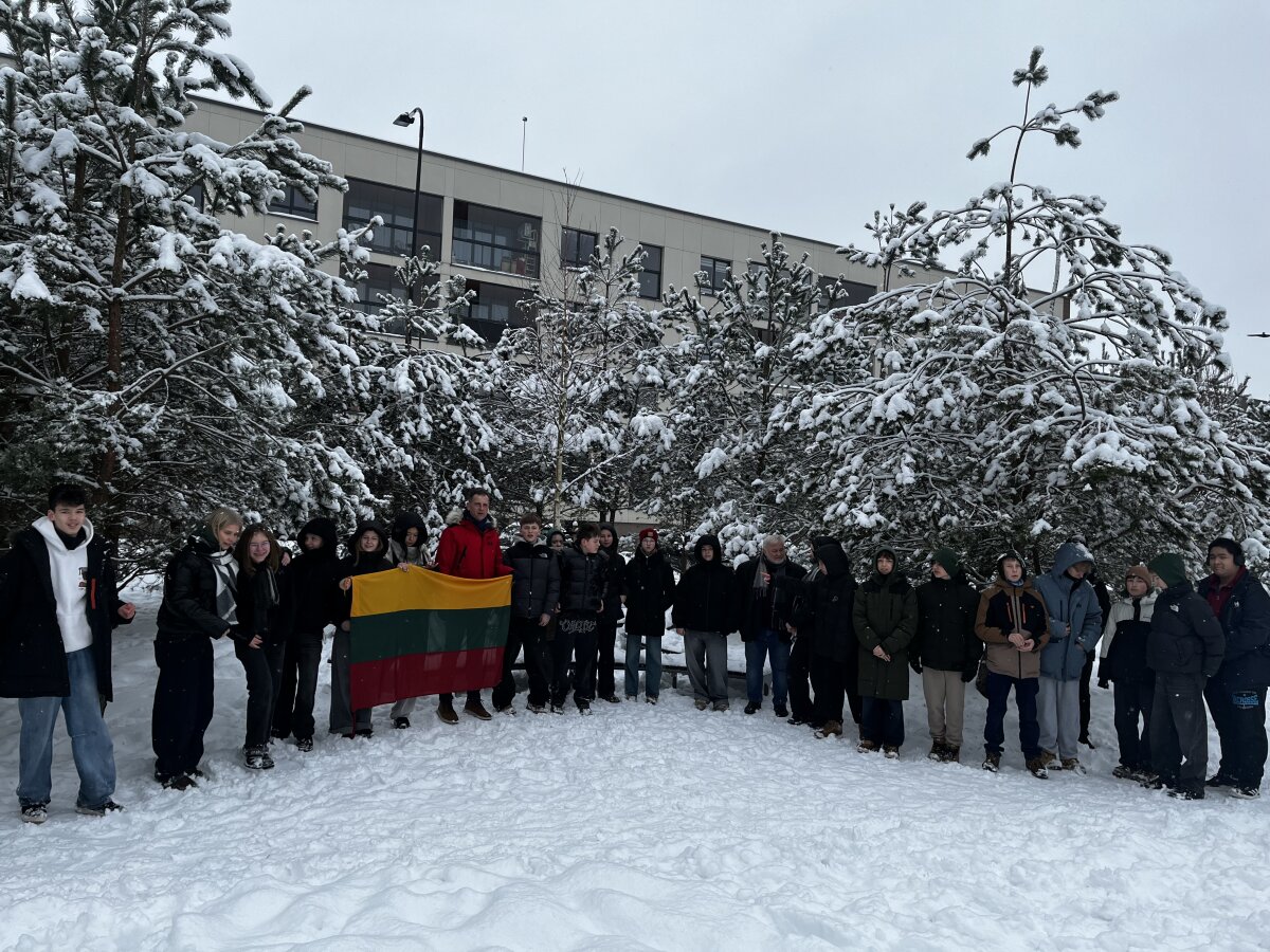 Progimnazijos 4 c, 5 d, 7 a, 7 b ir 7 d klasių mokiniai savaitę, skirtą Vasario 16-ajai, pradėjo pasipuošę trispalve simbolika. Mažosios Lietuvos skveras pasirinktas neatsitiktinai – jis primena istorinius ryšius su Lietuva, mūsų kultūros ir tautinės tapatybės išsaugojimo svarbą.