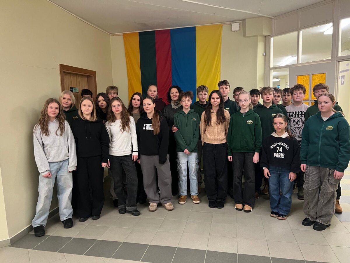 Progimnazijos Europos klubas, parodydamas solidarumą ir pagarbą, atkreipė dėmesį ir į šiandieninę Ukrainos kovą už laisvę – buvo išskleistos Lietuvos ir Ukrainos vėliavos, simbolizuojančios vienybę, stiprybę ir bendrą vertybinį kelią.