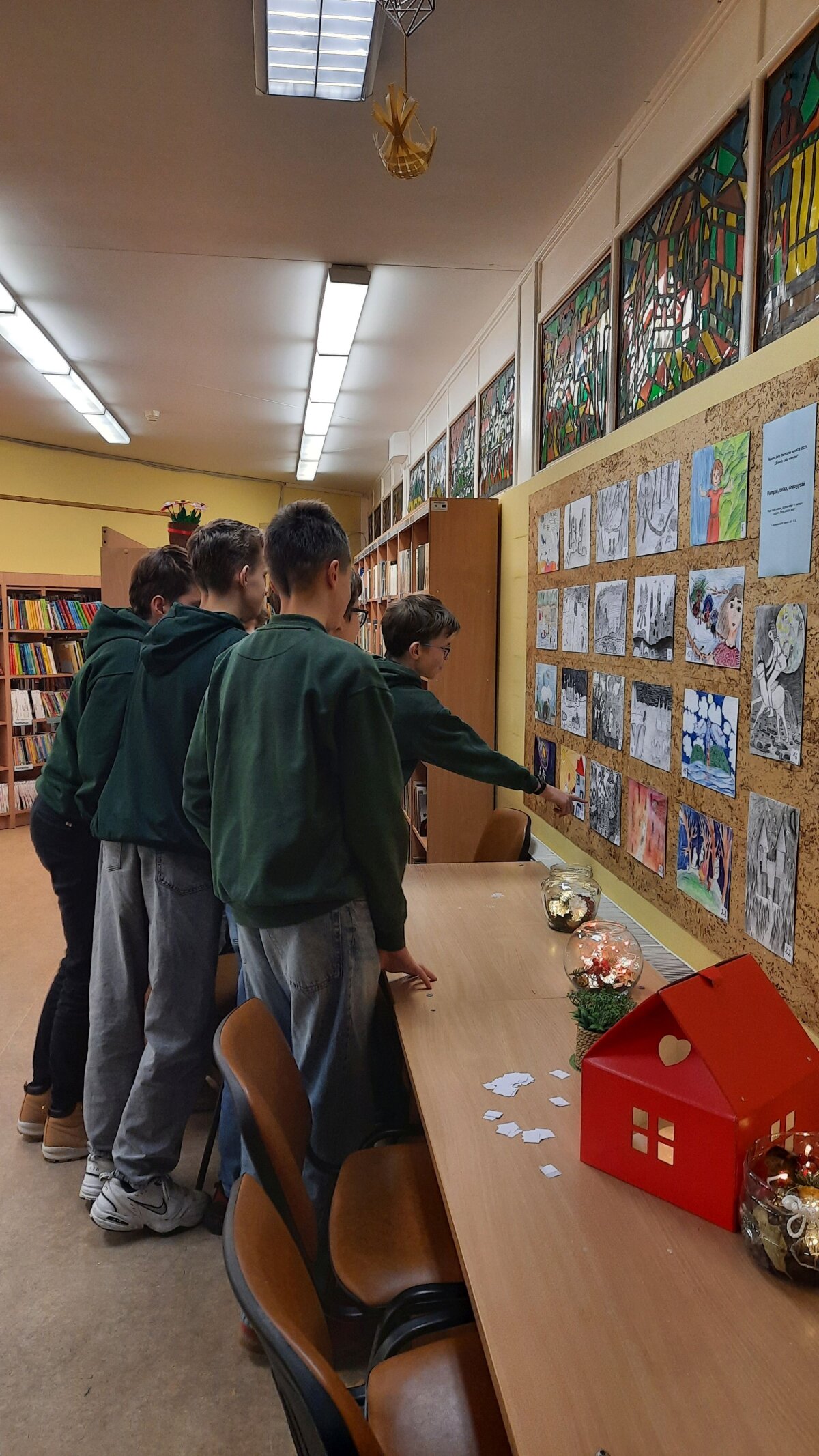 Kaip ir kasmet, Šiaurės šalių literatūros savaitę vizualiai papuošė dailės mokytojos M. Tverkutė ir D. Varslavėnienė, padėjusios mokiniams kūrybiškai interpretuoti skaitomų kūrinių temas. Bibliotekininkė D. Matulevičienė 4d ir 5d klasės mokiniams pristatė ištraukas iš T. Janson kūrinio „Kometa artėja“ bei A. Lindgren „Ronja plėšiko duktė“. Klausydamiesi šių pasakojimų, mokiniai per piešinius išreiškė svarbiausias šiaurietiškos literatūros vertybes – vienybę, taiką ir draugystę.