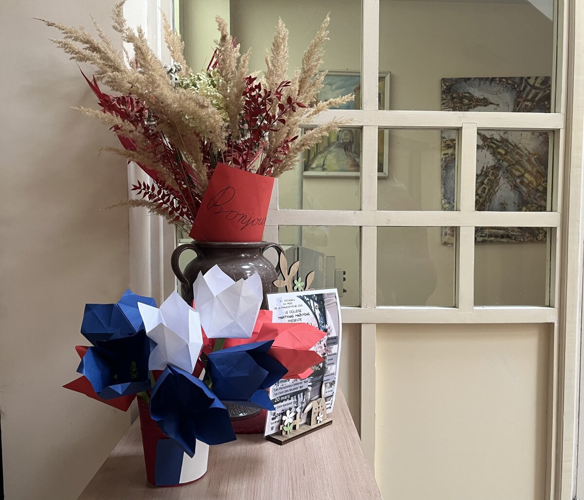 Visą savaitę 5 pp klasėje dūzgė kūrybinės dirbtuvės – penktokai pagamino daugiau nei 160 Prancūzijos vėliavos spalvų tulpių ketvirtokams.