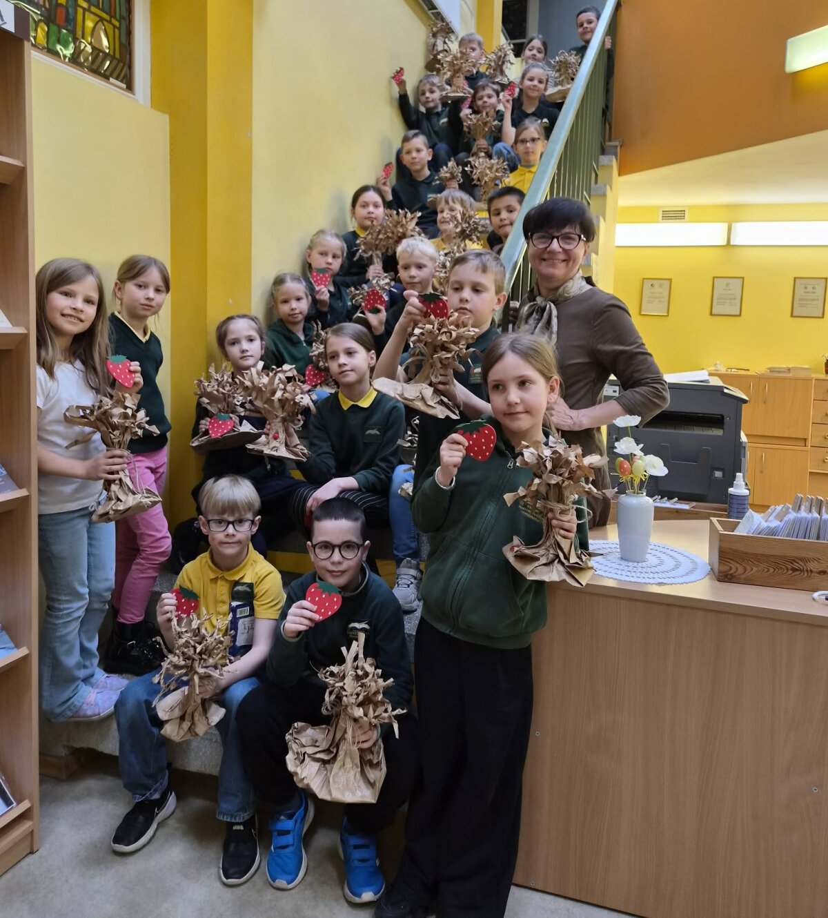 Pirmokus lankstyti medelius mokė direktorės pavaduotoja ugdymui Vilma ir 1b klasės mokytoja Vilija. Prie veiklos prisidėjo ir vyresnių klasių mokiniai – 5a, 5p, 6d, 8b ir 8pp klasių atstovai, kurie paruošė priemones ir padėjo pirmokams. Dalis jų sukurtų medelių papuošė pagal projektą šiemet įkurtą Žaliąją erdvę, taip prisidėdami prie progimnazijos aplinkos puošybos ir tvarumo idėjų sklaidos. Pirmokų darbai iškeliavo į klasę – jie papuošė palangę ir dabar laukia simbolinio „sužydėjimo“, kuris taps kito dirbtuvių etapo dalimi.